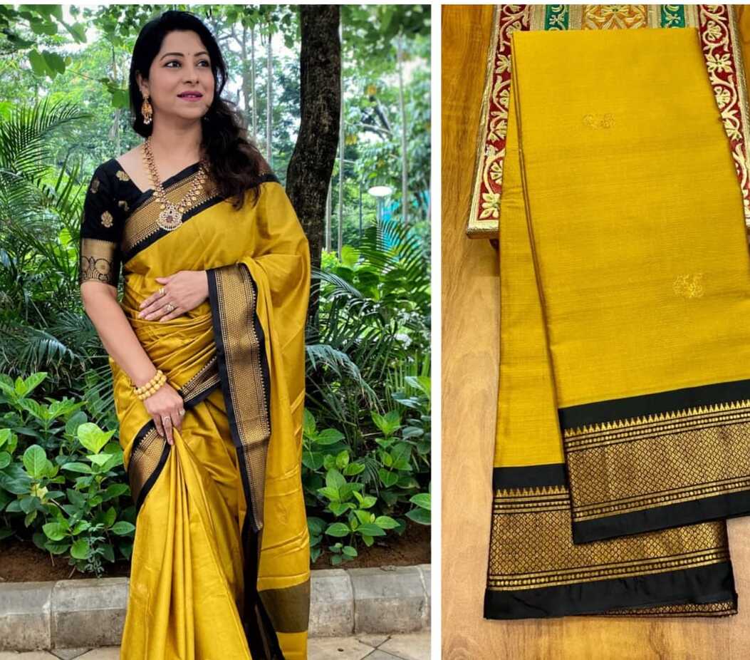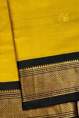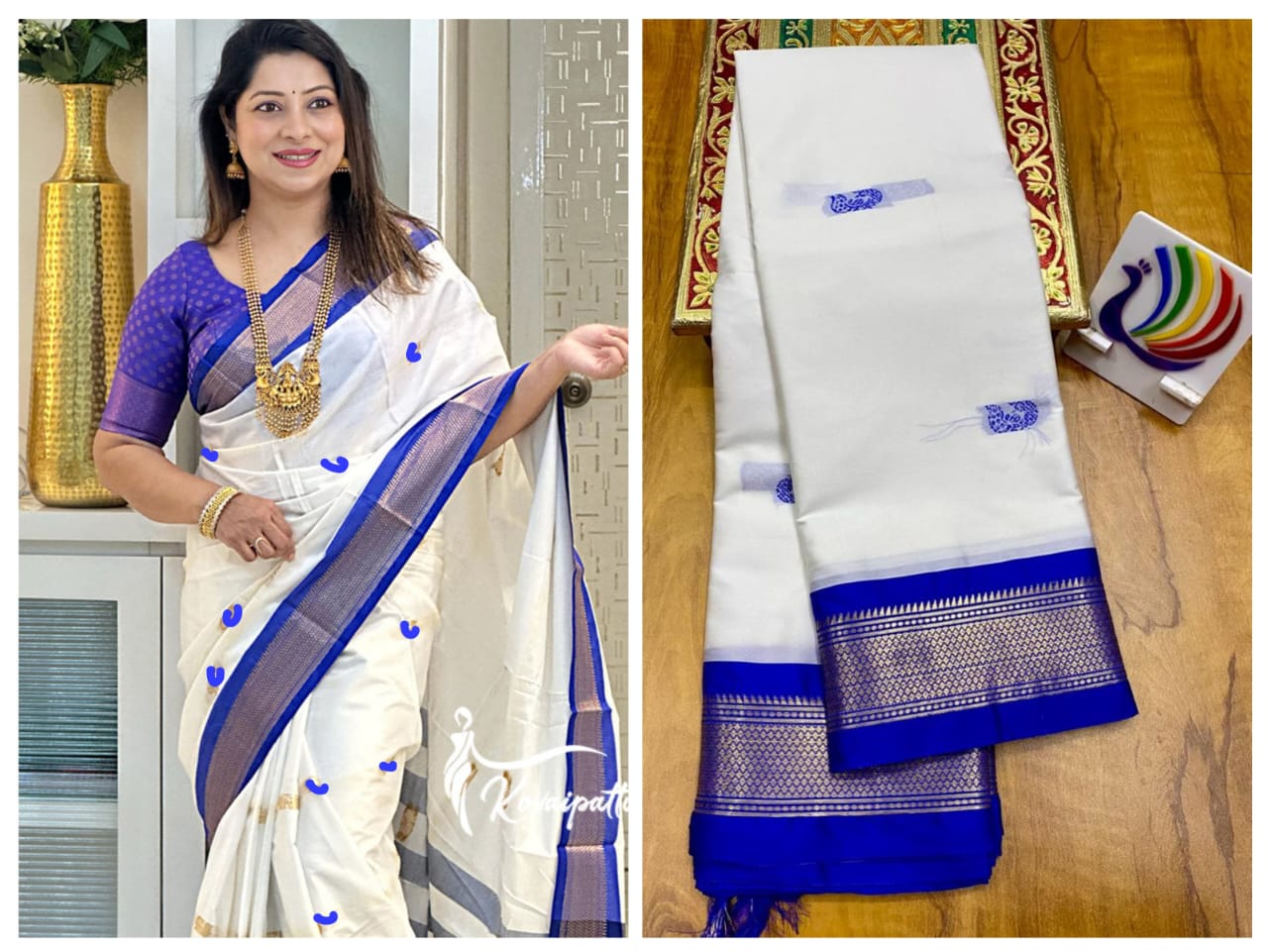 Pallu & Border: Classic Kadiyal weaving with traditional peacock motifs