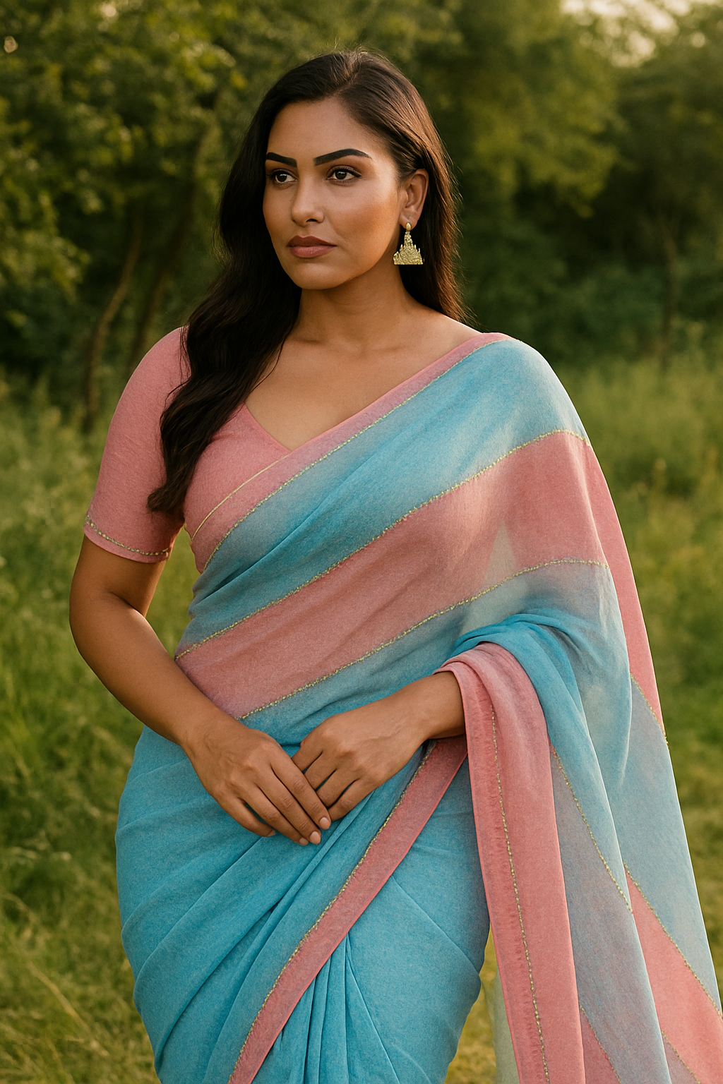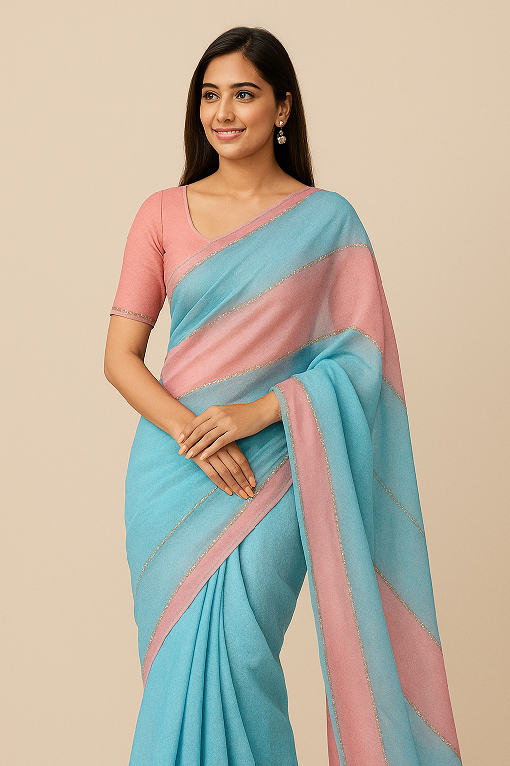 Design: Beautiful pastel dual-tone combination of pink and blue, blending modern charm with traditional grace.