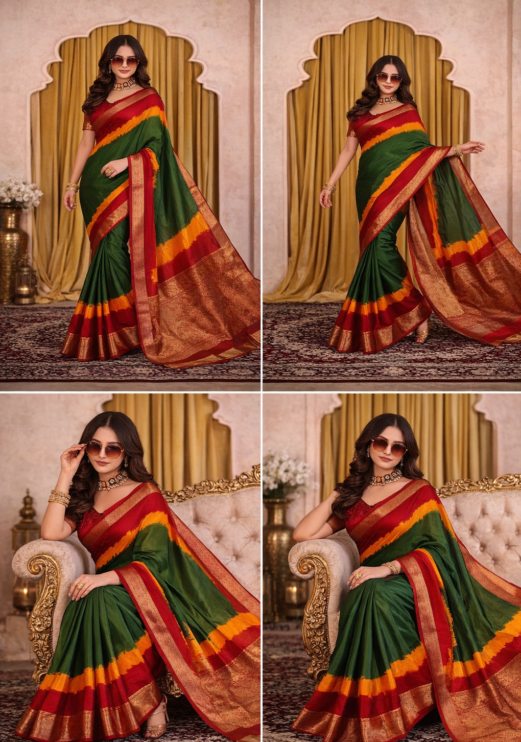 Country of Origin: India Introducing the Women’s Elegant Multicolor Soft Saree adorned with a rich green border, available for the remarkable price of Rs. 599.