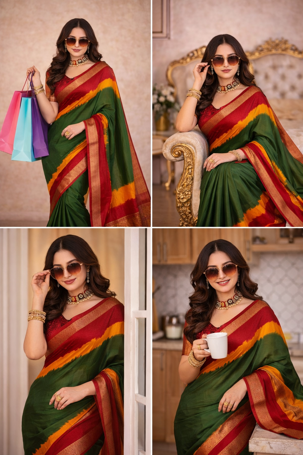 This saree features a rich color combination with a classy border, perfect for festivals, parties, and daily wear.